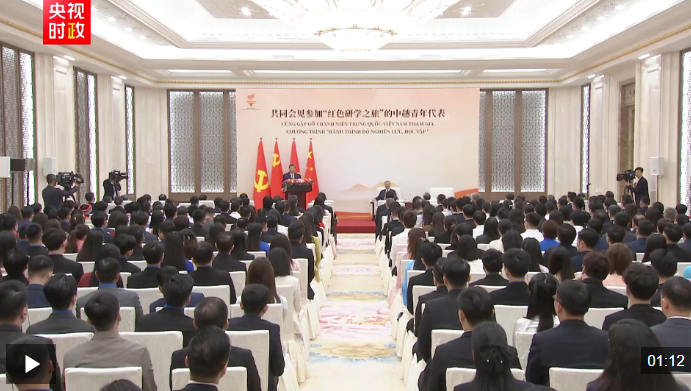 4月15日上午,中共中央总书记、国家主席席大大在人民大会堂同来华进行国事访问的越共中央总书记、国家主席苏林共同会见参加“红色研学之旅”的中越青年代表。