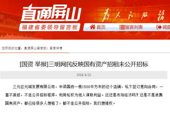 三明一国有资产出租未公开招标?多部门回应