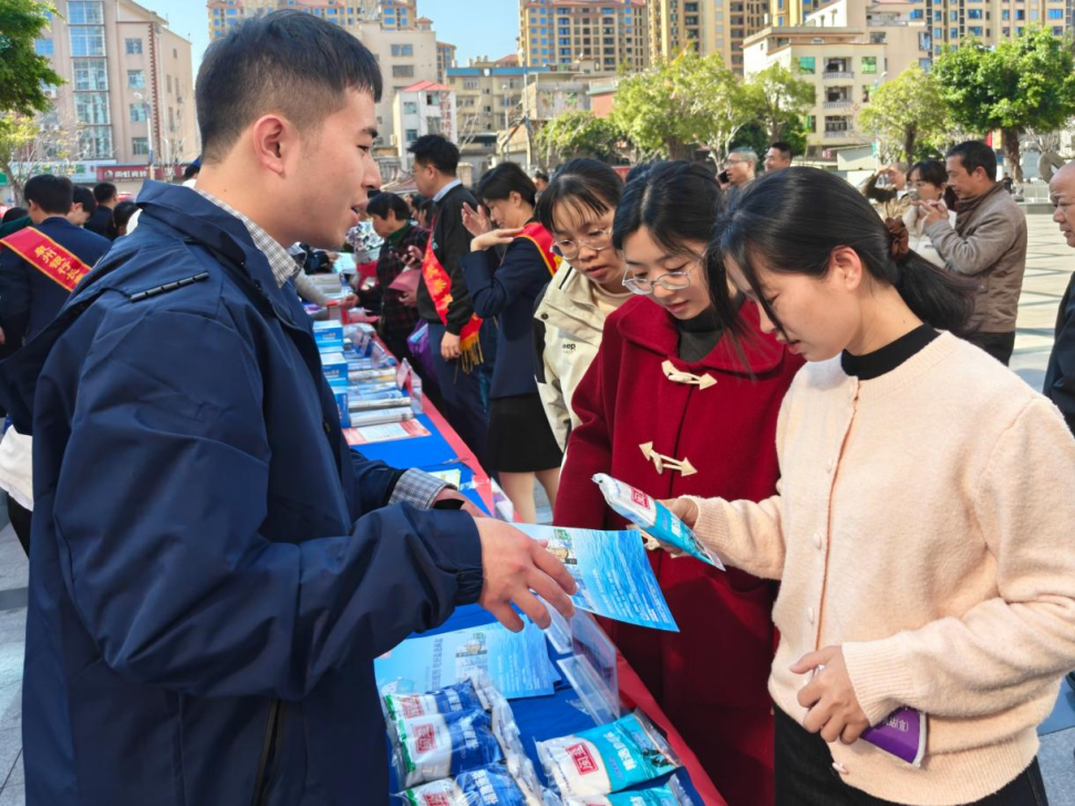 宁德盐业主动对接各地市场监管局,分片区开展宣传。现场精心设置了咨询服务、产品展示、科普宣教、互动体验等多个专区。工作人员细致讲解科学用盐及生态海盐知识,全方位展示多款“闽盐”产品。通过展板和有奖问答,不仅普及了维权知识,更着力为消费者营造了安全、放心的消费环境。