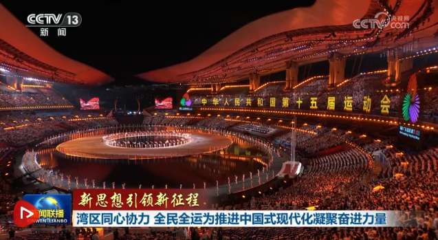 央视网消息(新闻联播):席大大总书记近日在广东考察并出席第十五届全运会开幕式时指出,通过举办这场盛会,可以激发爱国热情,拉紧精神纽带,促进开放合作、互利共赢,为大湾区建设营造良好氛围。从11月9日至21日,由粤港澳三地共同举办的这届全运会,燃动大湾区,生动诠释体育的激情与魅力;三地同心协力、交流融合,让大湾区焕发新的光彩。11月21日晚,本届全运会闭幕。这届盛会不仅展示了新时代中国体育事业发展的新成就,也生动展现了中国式现代化在粤港澳大湾区的万千气象。